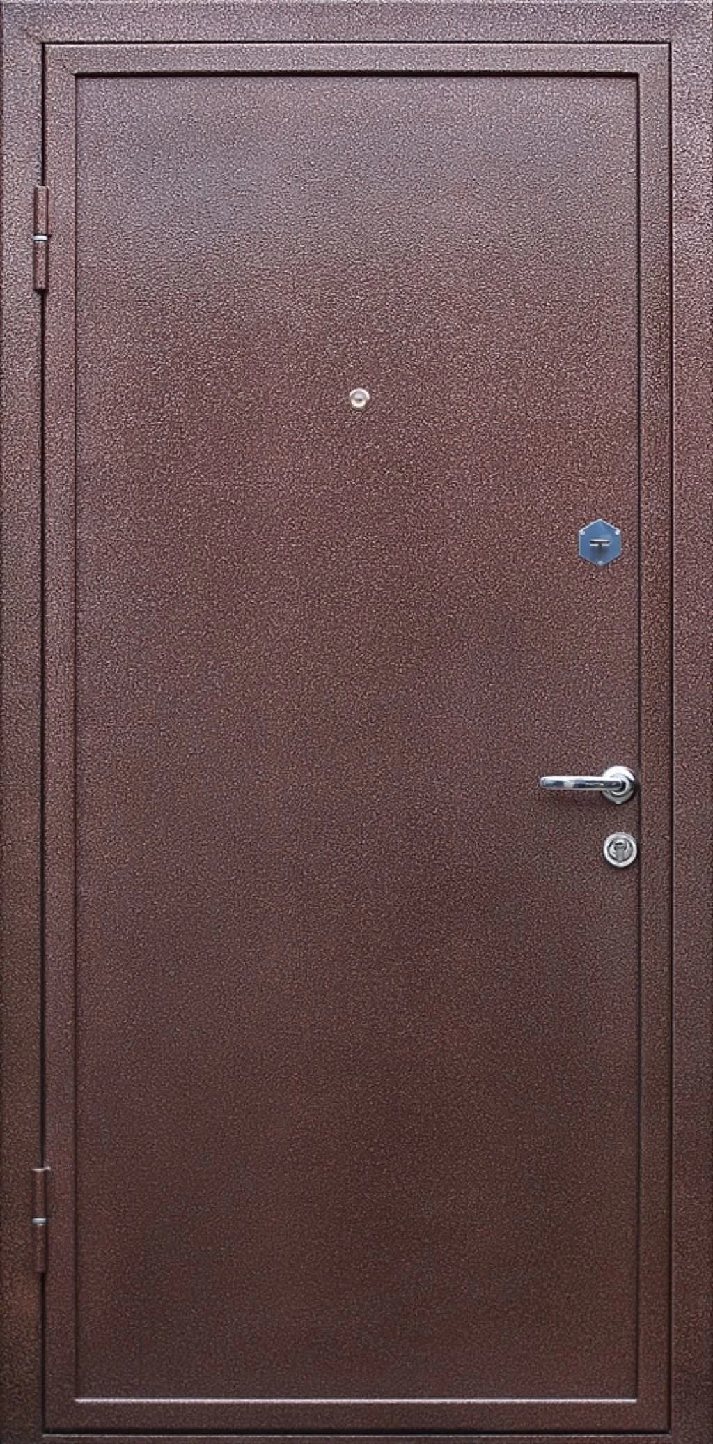 Порошково-полимерное напыление может быть глянцевым и матовым. Может быть использовано как для квартирных, так и для уличных дверей.