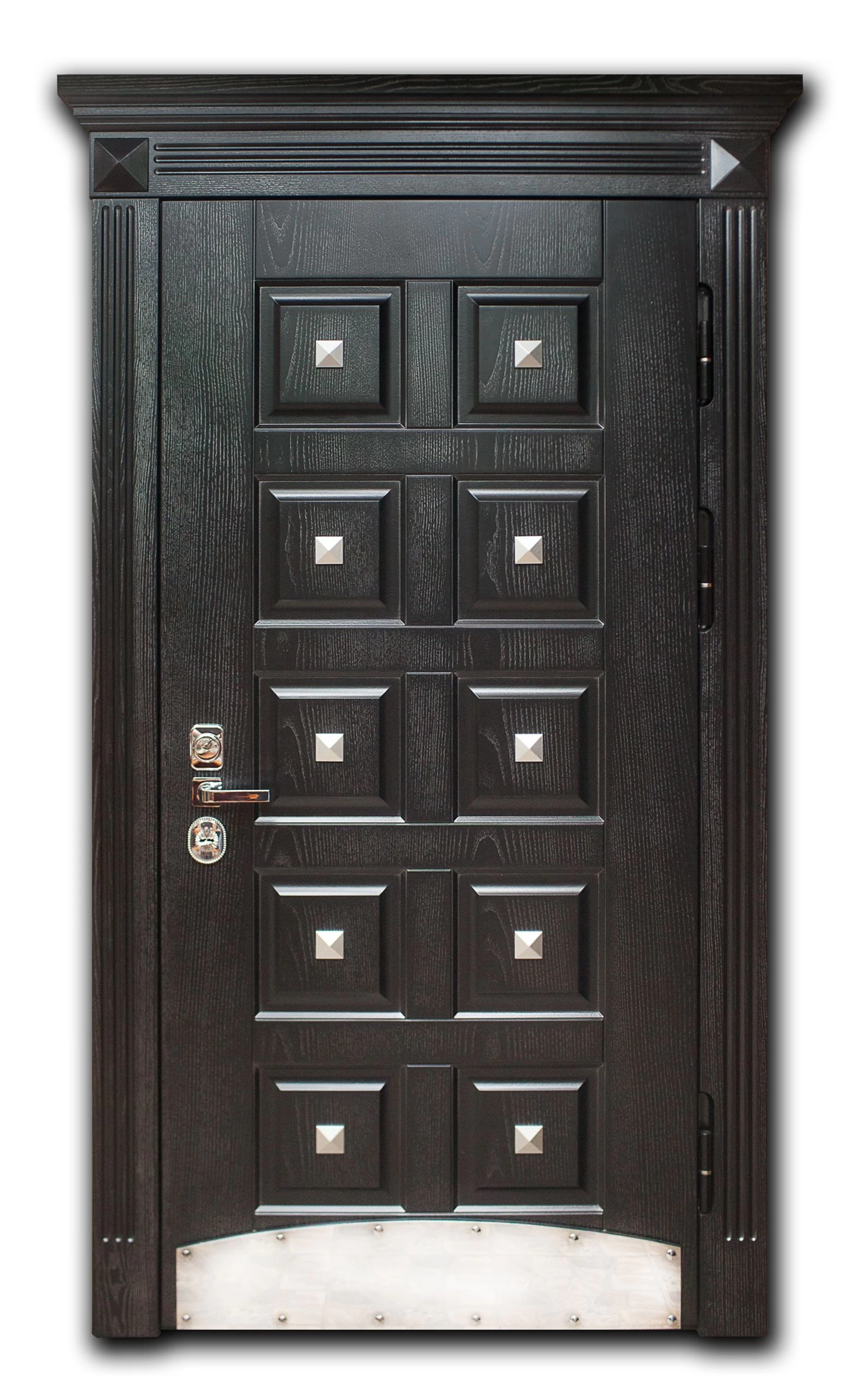 В основе конструкции элитных дверей в Барнауле - стальной лист толщиной не менее 2.0 мм, дверное полотно укреплено ребрами жёсткости (могут быть горизонтальными, вертикальными, комбинированными). При желании можно сделать дверь из стали 3.0 и даже 4.0 мм. Но тут есть ряд особенностей. Полотно и каркас такой двери невозможно сделать из гнутого профиля, конструкция только сварная. Ну и надо помнить, что двери из толстого металла очень тяжёлые, а следовательно, травмоопасные.