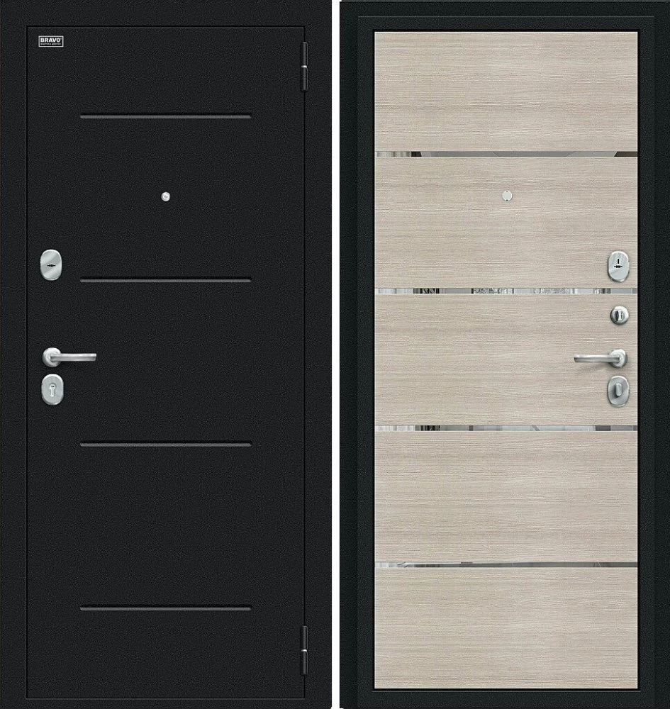 Надежная входная Дверь Браво Лайн Букле черное/Cappuccino Veralinga премиум класса по цене 30 669 руб. Большая толщина стали защитит от проникновения в ваш дом, квартиру или коттедж. Используется очень качественная фурнитура: замки, цилиндры, ручки, защелки. Покрытие и отделка двери изготовлено под внимательным контролем производителя. Дверь имеет долгий срок службы и гарантию.