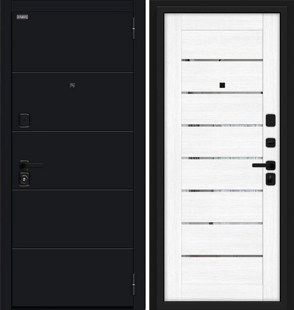 Надежная входная Дверь Браво Прайд Total Black/Snow Melinga премиум класса по цене 40 449 руб. Большая толщина стали защитит от проникновения в ваш дом, квартиру или коттедж. Используется очень качественная фурнитура: замки, цилиндры, ручки, защелки. Покрытие и отделка двери изготовлено под внимательным контролем производителя. Дверь имеет долгий срок службы и гарантию.