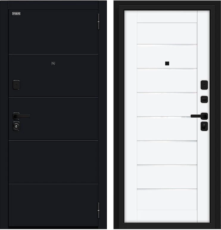 Надежная входная Дверь Браво Прайм/SBlack-Black Shell/White Silk премиум класса по цене 40 899 руб. Большая толщина стали защитит от проникновения в ваш дом, квартиру или коттедж. Используется очень качественная фурнитура: замки, цилиндры, ручки, защелки. Покрытие и отделка двери изготовлено под внимательным контролем производителя. Дверь имеет долгий срок службы и гарантию.