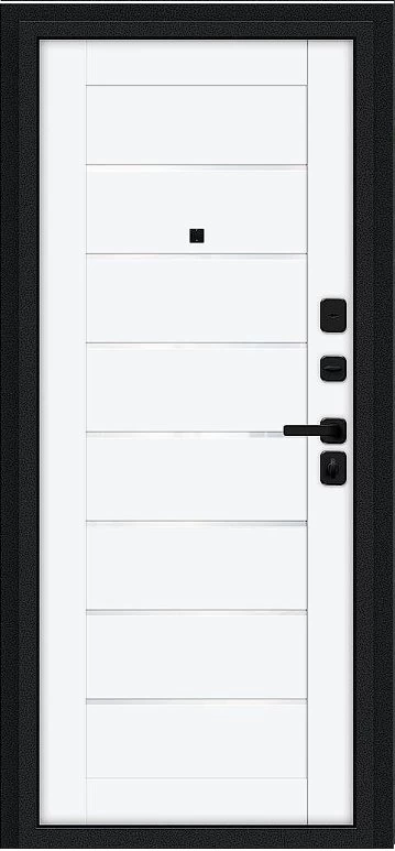 Надежная входная Дверь Браво Техно/SBlack Букле черное/White Silk премиум класса по цене 35 799 руб. Большая толщина стали защитит от проникновения в ваш дом, квартиру или коттедж. Используется очень качественная фурнитура: замки, цилиндры, ручки, защелки. Покрытие и отделка двери изготовлено под внимательным контролем производителя. Дверь имеет долгий срок службы и гарантию.